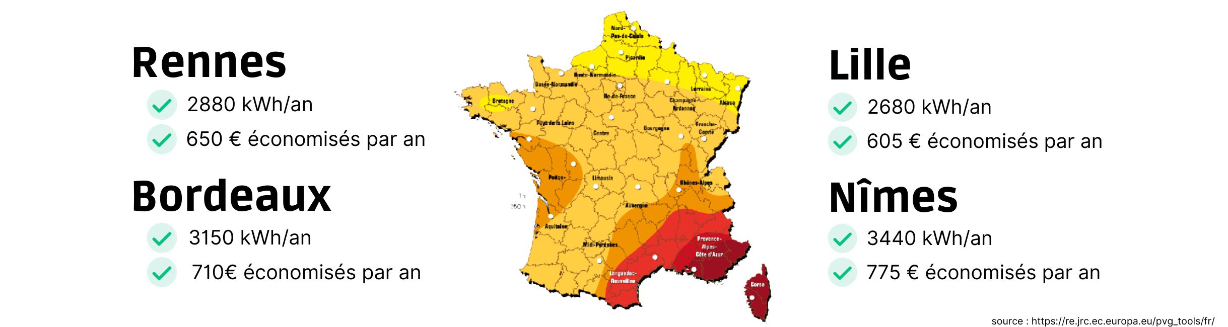 - Puissance totale de 2460 Wc (410 Wc par panneau)