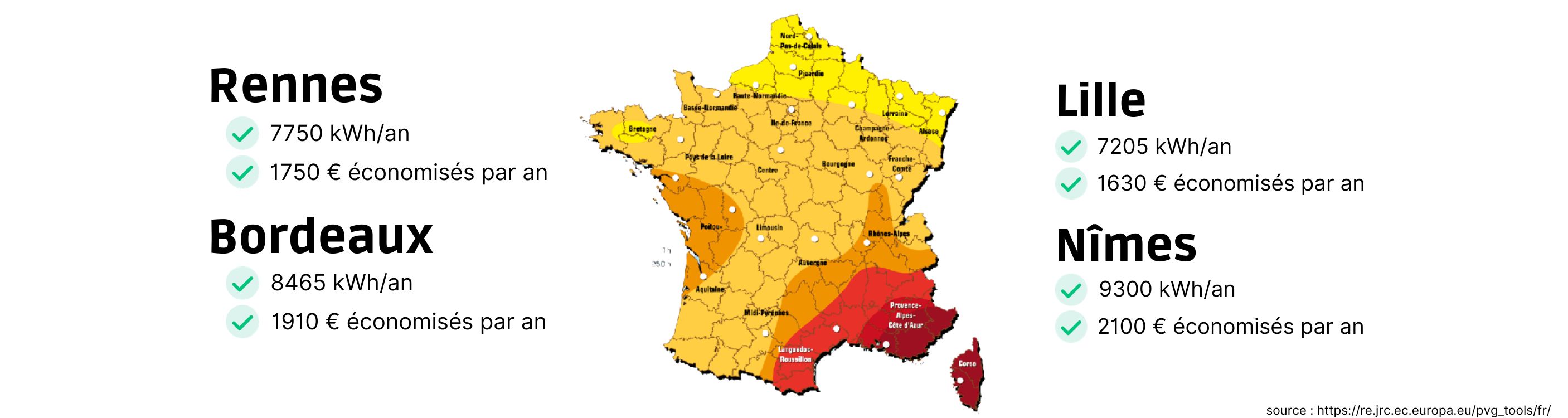 - Puissance totale de 6640 Wc (415 Wc par panneau)